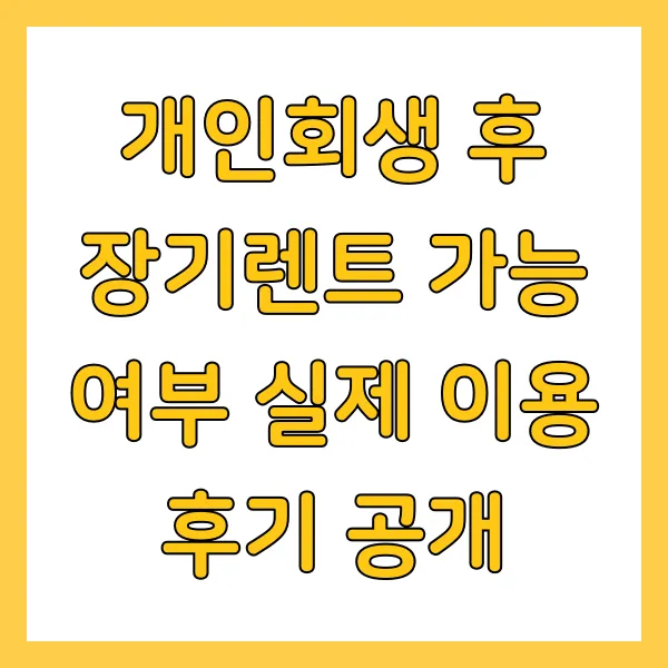 개인회생 중 장기렌트 이용 가능성 에 대한 궁금증이 많으셨을 겁니다. 본문에서 심도 있게 다룬 심사 조건 , 계약 시 필수 확인 사항 , 그리고 생생한 실제 이용 후기 는 여러분의 의사 결정에 핵심적인 정보를 제공 합니다.
