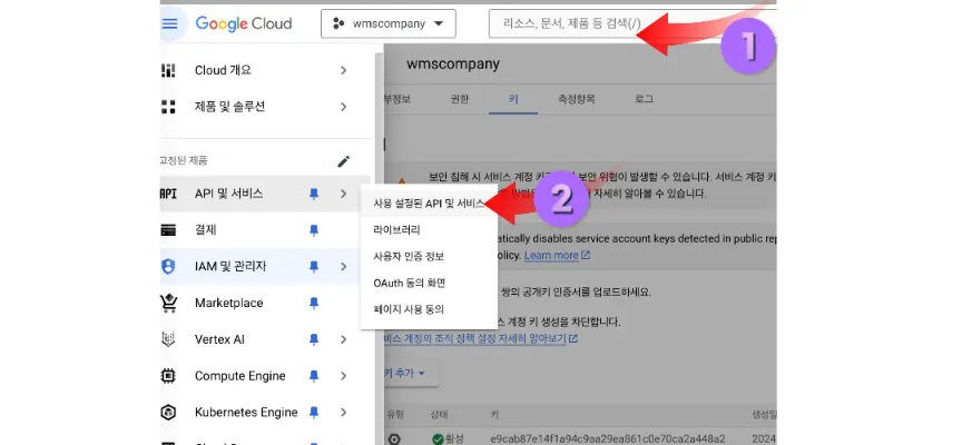 다시 1번에 api 및 서비스 검색해서 들어가 줍니다.