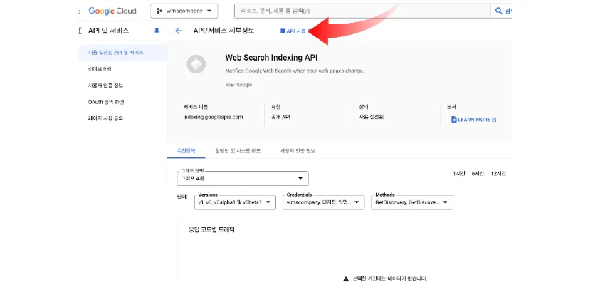 4번: 돌아와서 다시 api 클릭하면 잘되는 걸 볼 수 있을 것입니다.