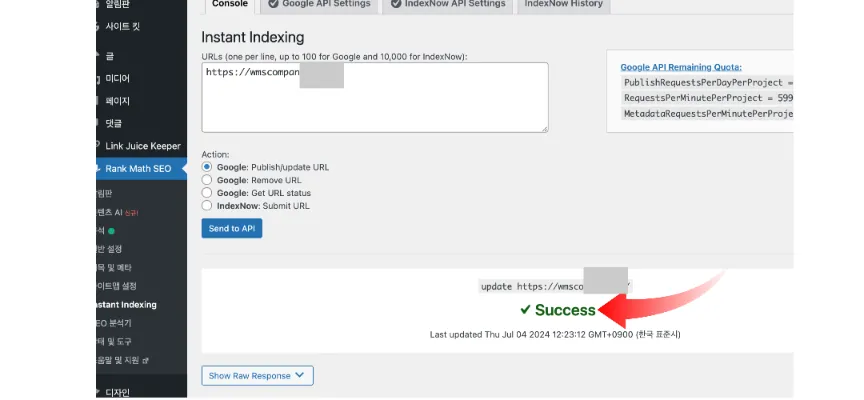워드프레스 글작성해서 발행하면 자동으로 링크를 구글서치콘솔에 제출하여 자동으로 색인 요청하는 것을 이미합니다.