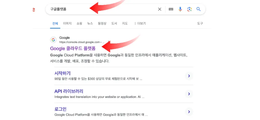 플러그인 설치 후 구글에 구글 플랫폼 검색해서 구글 클라우드 플랫폼 클릭합니다.